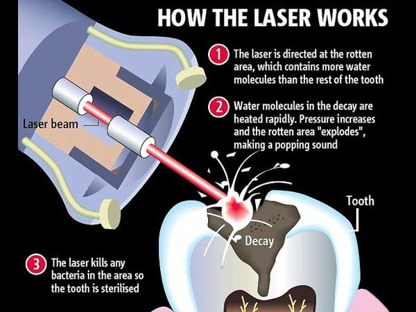 - Tooth decay : Lasers are used to remove decay within a tooth and prepare the surrounding enamel for receipt of the filling.